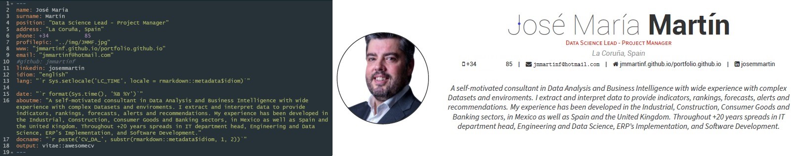 Create a resume document with code is logic for coders, much more if you work with R, where a library called "vitae" offers templates with reasonable flexibility.